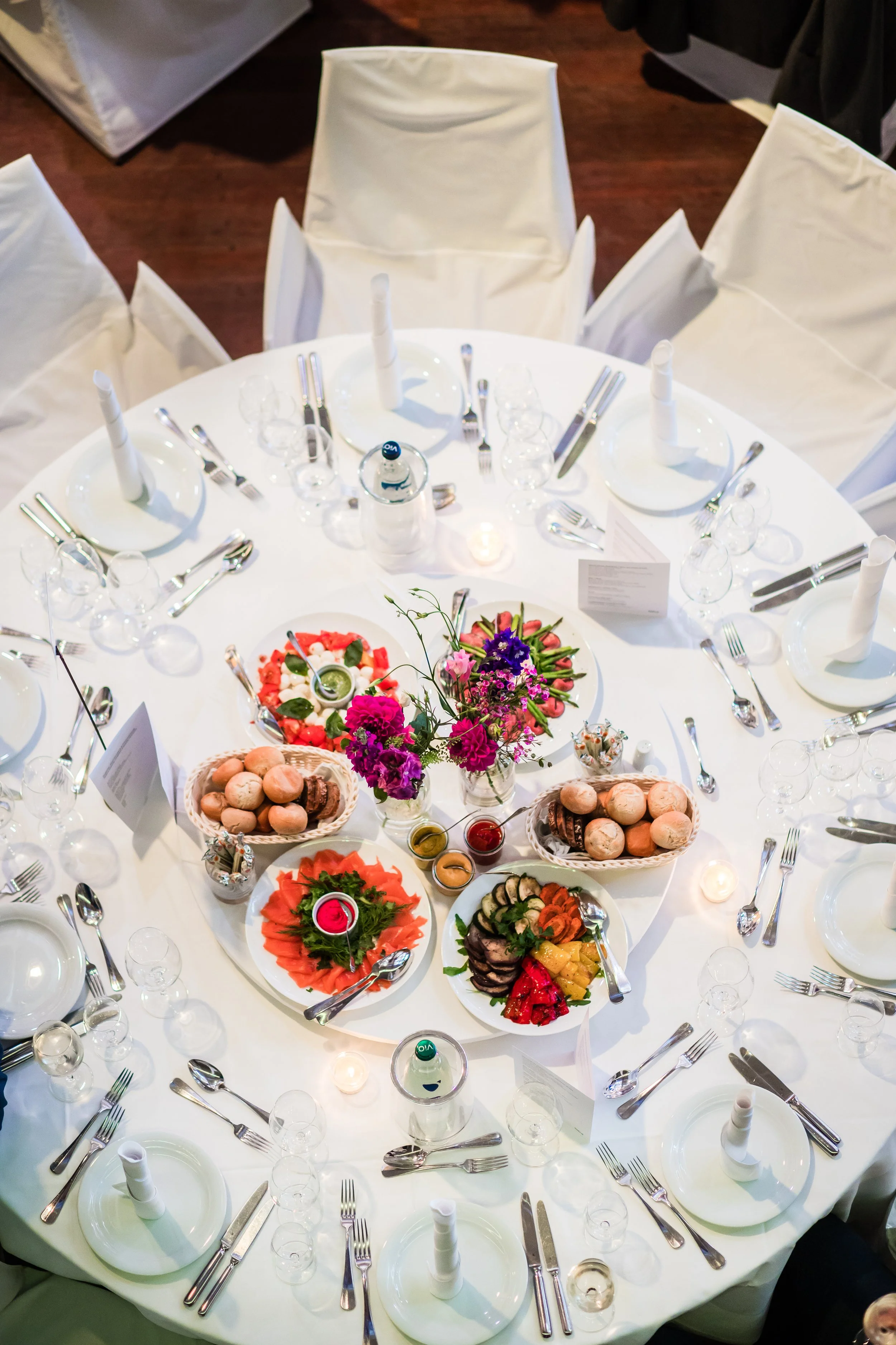 We only use porcelain and glass dishes - everything is washed and can be reused.